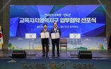 진도 최준규 기자2025. 11.06[시사토픽뉴스]진도군은 지난 11월 5일에 전라남도교육청과 ‘전라남도 교육자치협력지구 운영 업무협약’을 체결했다고 밝혔다. 이번 협약식은 진도교육지원청에서 주최하는 ‘2025 보배섬 진도 글로컬 교육축전’이 열리고 있는 진도실내체육관에서 진행됐으며, 김희수 진도군수, 김대중 전라남도교육감, 박금례 진도군의회의장과 군의원, 전라남도교육청과 진도교육지원청 관계자, 학부모, 학생들이 참석했다. 이번 협약은 지역사회와 학교가 함께 성장하는 지속 가능한 교육생태계를 구축하는 것을 목표로 한다. 업무협약의 주요 내용은 ▲교육 발전과 지역...