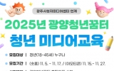 광양 최준규 기자2025. 11.06[시사토픽뉴스]광양청년꿈터가 ‘찾아가는 청년 미디어교육’에 참여할 수강생을 선착순으로 모집한다. ‘찾아가는 청년 미디어교육’은 청년들의 미디어 활용 역량 강화를 목표로, 광양청년꿈터와 광주시청자미디어센터가 협력해 추진하는 사업이다. 시청자미디어재단 광주시청자미디어센터는 국민 누구나 다양한 미디어 혜택을 누릴 수 있도록 지원하는 미디어 전문 기관으로, 이번 협력을 통해 지역 청년들에게 전문적이고 접근성 높은 교육을 무상으로 제공할 계획이다. 교육 과정은 ▲‘팔로우를 부르는 숏폼 만들기’(2차시)와 ▲‘이모티콘 제작 첫걸음’(1차...
