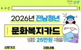 순창군 최준규 기자2026. 02.09[시사토픽뉴스]광양시는 도내 청년들의 문화 향유 기회 확대와 자기계발을 지원하기 위해 ‘2026년 전남청년 문화복지카드 지원사업’ 신청 접수를 2월 9일부터 실시한다고 밝혔다. 전남청년 문화복지카드 지원사업은 전라남도에 거주하는 청년에게 체크카드 바우처 방식의 문화복지카드를 지급하는 사업으로, 1인당 연 최대 25만 원을 지원한다. 지원 대상은 19세 이상 28세 이하(1998~2007년도 출생자) 청년으로, 신청 개시일 기준 전라남도에 2년 이상 계속 거주하고(2024년 2월 9일 이전부터 도내 거주), 신청일 기준 주민등록상...