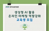 사회 최준규 기자2025. 11.05[시사토픽뉴스]경기도농업기술원은 오는 12일까지 ‘생성형 AI 활용 온라인 마케팅 역량강화 교육’에 참여할 농업인 30명을 모집한다. 교육은 12월 5일과 10일 이틀간 농업기술원 내 정보화교육장에서 진행되며, 약 10시간 동안 ▲AI를 활용한 마케팅 전략수립 ▲온라인 마케팅을 위한 AI의 활용 ▲생성형 AI활용 상세페이지 제작 등 이론과 실습을 병행한다. 현재 유튜브나 스마트스토어 등 온라인 마케팅을 진행 중인 가운데, AI 활용을 희망하는 경기도 농업인이라면 누구나 무료로 교육에 참여할 수 있다. 신청 방법은 시군농업기술센...