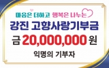 강진 최준규 기자2025. 12.23[시사토픽뉴스]강진군이 2023년 고향사랑기부제도 시행 이래 첫 2천만 원 기탁자가 탄생했다고 밝혔다. 연간 기부 한도가 2천만원으로 상향된 올해 첫 최고액 기부자가 탄생했다. 해당 익명의 기부자는 강진군과 군민을 위해 기부금을 잘 써달라며 그 이상의 내용 언급을 정중하게 거절해 잔잔한 울림을 더했다. 강진군 관계자는 “강진을 사랑하는 기부자님의 감동적인 실천에 대단히 감사드린다”라며 “2026년에도 기부자의 자긍심이 될 수 있도록 ‘강진품애 기댄 일상동행 서비스’를 비롯한 기금사업을 성실히 추진하고, 품질 좋은 강진 답례품...