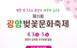 광양 최준규 기자2026. 03.26[시사토픽뉴스]광양시 금호동은 오는 4월 3일부터 4월 5일까지 금호동 조각공원 일원에서 3일간 제11회 광양벚꽃문화축제를 개최한다고 밝혔다. 올해로 11회를 맞이하는 이번 축제는 “벚꽃향 흐르는 봄날의 행복한 금호동”이라는 슬로건 아래 지역주민과 관광객이 함께 어우러지는 다채로운 문화행사로 꾸며질 예정이다. 축제는 개막식을 비롯해 전남드래곤즈 사인회 및 사인볼 증정, 벚꽃가요제, 벨리댄스 대회와 제철초 관현악 공연, 초대가수 무대, 가족 레크리에이션과 공연, 먹거리장터 등 다양한 프로그램이 마련됐다. 특히, 축제에서는 금호...