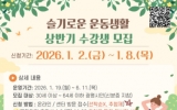 경제 최준규 기자2025. 12.22[시사토픽뉴스]광명시 광명건강생활지원센터는 새해를 맞아 시민들의 건강한 생활습관 형성과 만성질환 예방을 위해 2026년 상반기 ‘슬기로운 운동생활’ 운동 프로그램 참여자를 모집한다. ‘슬기로운 운동생활’은 요가, 다이어트 댄스, 근력운동 등 다양한 프로그램으로 구성돼 있으며, 전문 강사의 지도를 통해 시민들이 꾸준한 운동 습관을 형성하고 건강한 일상을 유지할 수 있도록 돕는다. 프로그램은 2026년 1월 19일부터 6월 11일까지 광명건강생활지원센터에서 운영한다. 참여 신청은 2026년 1월 2일 오전 9시부터 1월 8일 오후...