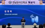 김제시 최준규 기자2025. 10.23[시사토픽뉴스]김정희 전남도의회 교육위원장은 10월 23일 목포여자고등학교에서 열린 ‘전남온라인학교 개교식’에 참석해, 전남교육이 나아갈 미래교육의 방향을 제시하고 디지털 기반 교육혁신의 의의를 강조했다. 전남온라인학교는 전국 광역시·도 가운데 최초로 구축된 도 단위 온라인 학습 플랫폼으로, 전남의 넓은 지리적 특성과 도서·농산어촌 지역의 교육 여건을 보완하기 위해 설립됐다. 현재 인공지능 수학, 비판적 사고, 미적분, 경제 등 36개 쌍방향 실시간 강좌를 운영하며, 300여 명의 학생이 원격으로 참여하고 있다. 이날 김정...