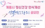 임실군 최준규 기자2025. 10.23[시사토픽뉴스]계룡시는 정신건강 홍보주간(10. 10.∼24.)을 맞아 시민이 직접 참여하는 ‘계룡시 정신건강 인식개선 캘리그라피 공모전’을 개최한다. 이번 공모전은 정신건강에 대한 편견을 해소하고 마음 건강의 중요성을 알리기 위한 시민 참여형 공익 행사다. 공모 주제는 ‘정신건강 인식 확산 및 편견 해소’로, 정신질환자에 대한 사회적 오해를 바로잡고 정신건강 문제 발생 시 주변의 이해와 지지가 필요하다는 메시지를 담으면 된다. 작품은 A3(297*420mm) 크기의 켄트지 또는 도화지에 사인펜, 크레용, 물감 등 자유로운 재...