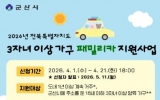 군산시 최준규 기자2026. 04.01[시사토픽뉴스]군산시는 다자녀 가구의 경제적 부담을 완화하고 이동 편의를 제공하여 저출생 위기를 극복하고자 ‘2026년 전북특별자치도 3자녀 이상 가구 패밀리카 지원사업’ 참여자를 모집한다고 밝혔다. 이번 사업은 전북자치도 내에 1년 이상 계속 거주하면서 군산시에 주소를 둔 18세 이하의 자녀 3명 이상을 양육하는 가구를 대상으로 하며, 공고일 기준 자녀 중 3명 이상이 2007년 4월 1일 이후 출생한 경우에 신청할 수 있다. 지원 대상으로 선정된 총 30가구에게는 6~11인승 패밀리카 신차 구입비의 10%, 가구당 최대 ...