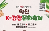 전라북도 최준규 기자2025. 10.21[시사토픽뉴스]익산에서 김장 고민을 해결하고, 체험까지 즐기는 축제의 장이 펼쳐진다. 익산시는 11월 22~23일 중앙체육공원에서 '김치명인과 함께하는 K-김장문화축제 익산'을 주제로 시민 누구나 쉽게 참여할 수 있는 김장 행사를 진행한다고 21일 밝혔다. 이번 행사는 김장 준비에 부담을 느끼는 소비자들을 위해 마련됐다. 김장체험 꾸러미는 100% 국내산 농산물로 구성돼 간편하게 김장을 하고 싶은 40~50대는 물론 김장 첫 도전에 나선 20~30대에게도 안성맞춤이다. 축제는 익산 농가의 절임배추와 김치명인이 직접 만든 ...