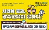 광주광역시 최준규 기자2025. 10.19[시사토픽뉴스]광주시교육청시민협치진흥원은 오는 29일 오전 10시부터 2시간 동안 본원 소강당에서 시민 소통 행사 ‘시민이 묻고, 광주교육이 답하다’를 운영한다. 이번 행사는 지난 7월 ‘고입·대입 진학’ 주제를 시작으로, 8월 ‘AI 디지털 교육’, 9월 ‘학교폭력 예방 및 학생 마음·사회 정서’ 등 순으로 진행됐으며, 29일에는 올해 마지막으로 ‘국제교육’을 주제로 열린다. 마지막 행사 역시 시민들의 궁금증을 해소하고 공감대를 형성하는데 주력할 예정이다. 시교육청 세계민주시민교육과 장학관, 장학사가 참여해 국제교육 핵심 정...