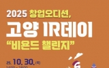 사회 최준규 기자2025. 10.17[시사토픽뉴스]고양특례시는 오는 30일 일산서구청 가와지 대강당에서 창업오디션‘2025년 하반기 고양 아이알(IR)데이’를 개최한다고 밝혔다. 이번 행사는 성장 가능성 있는 창업기업과 투자자, 창업지원기관 간의 만남의 장으로, 창업기업에 투자 유치 연계, 사업 파트너십 구축, 네트워킹 확대 등 다양한 기회를 제공하기 위해 마련됐다. 시는 지난 8월 25일부터 고양 아이알(IR)데이 창업기업을 모집했다. 총 47개사가 신청해 1차 서류평가와 2차 발표 평가 절차를 거쳐 최종 10개사가 선정됐다. 선정된 창업기업은 투자유치를 위한...