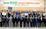 전라남도 최준규 기자2025. 10.16[시사토픽뉴스]전라남도는 16일 도청 왕인실에서 제43대 명창환 행정부지사 퇴임식을 개최했다. 퇴임식에선 재임 기간 주요 활동을 담은 기념 영상을 상영한 뒤 강위원 경제부지사가 공로패를, 직원들이 재직기념패와 추억이 담긴 사진첩과 꽃다발을 전달했다. 이어 경제부지사의 송별사와 명창환 행정부지사의 퇴임사를 끝으로 공식 행사를 마무리하고 1층 윤선도홀에서 직원들이 행정부지사의 마지막 도청 떠나는 길을 함께 했다. 명창환 부지사는 2023년 8월 부임 이래 2년 2개월 동안 전남의 미래 성장 동력 확보와 현안 해결을 위해 헌신하...