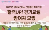 전주시 최준규 기자2025. 10.16[시사토픽뉴스]안산시 단원보건소 원곡보건지소는 오는 31일까지 ‘맞춤형 건강 프로그램 ’활력UP! 걷기교실’ 참여자를 모집한다고 16일 밝혔다. 이번 프로그램에서는 안재만 중앙대학교 체육과학대학 교수를 초빙해 ▲걷기의 효과와 방법 교육 ▲걷기 실습을 통한 자세 분석 및 교정 등 지역 주민들의 자가 건강관리 능력 향상을 위한 교육이 진행된다. 이번 프로그램은 11월 5일과 12일 2회에 걸쳐 실시되고, 지역주민 누구나 신청이 가능하다. 참가비는 무료이며, 참가를 원하는 시민은 원곡보건지소로 방문하거나 전화(031-481-6833)...