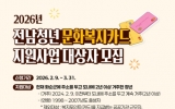 정읍시 최준규 기자2026. 03.25[시사토픽뉴스]화순군은 지역 청년들의 자기 계발과 문화생활 기회를 확대하기 위해 ‘2026년 전남 청년 문화복지카드 지원사업’ 대상자를 오는 3월 31일까지 모집한다고 밝혔다. 이 사업은 청년들에게 도서, 영화, 공연, 학원 수강, 체육시설 이용, 여행 등 폭넓은 문화·복지 활동을 지원하여 지역 정착을 돕는 사업이다. 선정된 청년에게는 1인당 연 최대 25만 원의 체크카드 포인트가 지급된다. 지원 대상은 현재 화순군에 주소를 두고 2024년 2월 9일 이전부터 도내에 2년 이상 거주한 청년으로, 1998년부터 2007년 사이 ...