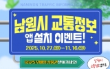 남원시 최준규 기자2025. 10.27[시사토픽뉴스]남원시는 시민들의 교통 편의를 높이기 위해 실시간 교통정보 앱을 출시하고 현재 다양한 홍보활동을 통해 적극적인 보급에 나섰다. 이번 이벤트는 남원시 교통정보 앱을 설치하고 인증한 시민을 대상으로 하며, 남원시 공식 SNS(인스타그램, 페이스북)를 통해 참여할 수 있다. 10월 27일부터 11월 16일까지 3주간 진행되며, 참여자 중 100명을 추첨해 편의점 모바일상품권을 증정한다. 당첨자는 11월 21일 남원시 SNS를 통해 발표될 예정이다. 해당 앱은 시내버스 도착예정 시간, 노선 정보, 공영주차장의 실시...
