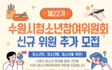 사회 최준규 기자2026. 02.14[시사토픽뉴스] 수원시청소년청년재단(이사장 최종진)은 수원시 청소년의 정책 참여 확대와 권익 증진을 위해 '제22기 수원시청소년참여위원회' 위원을 추가 모집한다고 밝혔다. 수원시청소년참여위원회는 청소년기본법5조의2(청소년자치권의 확대)에 따라 청소년이 직접 정책 제안과 의견 개진에 참여하며 청소년 정책의 실효성을 높이기 위해 운영되는 공식 참여기구이다. 이번 추가 모집은 수원시에 거주하는 9세부터 24세까지의 청소년을 대상으로 하며 총 20명 내외를 선발할 예정이다. 활동 기간은 2026년 3월부터 12월까지이며 주요 활...