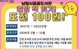 남원시 최준규 기자2026. 02.03[시사토픽뉴스]남원시공공도서관에서는 어린이들에게 책 읽기의 즐거움과 독서 습관 형성을 위하여 2월부터 11월까지 ‘출발 책 읽기 도전 100권’ 프로그램을 운영한다. 이 프로그램은 어린이가 스스로 선정한 그림책 80권과 사서가 추천한 그림책 20권을 모두 읽으면 목표를 달성하는 것으로, 어린이들에게 성취감 및 자기 주도적 독서 습관을 기르고 도서관 이용 활성화를 위해 마련됐다. 시민 중 2017년~2022년생 누구나 참여할 수 있으며, 기존 초등 2학년까지였던 대상을 올해는 3학년까지 한 학년 확대해 기회의 폭을 넓히고자 한다....