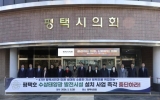 정치 최준규 기자2026. 02.03[시사토픽뉴스]평택시의회는 2월 3일, 시의회 본관 앞에서‘평택호 수상태양광 발전시설 설치 중단 촉구 성명서’를 발표했다. 이날 성명서 발표에서 “평택호 일대에 국내 최대 규모의 수상태양광 발전은 수질오염, 생태계 교란, 재난 취약성, 농업·식수원과의 충돌 등 중대한 위험 요인을 내포하고 있다”고 하며, “담수호 및 생태보전 지역은 공공의 생명·안전과 직결되는 공간인 만큼 사전 예방 원칙에 입각하여 이러한 시설의 설치는 원칙적으로 전면 배제되어야 한다”라고 밝혔다. 이어서 의회는 “평택호는 특정 기관이나 사업자의 소유물이 아니라...