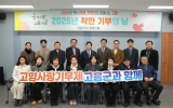 고흥 최준규 기자2026. 02.02[시사토픽뉴스]고흥군은 지난 30일 군청 팔영산홀에서 2026년 첫 ‘착한 기부의 날’ 행사를 열고, 지역사회 나눔 문화 확산을 위한 뜻깊은 자리를 마련했다. 이번 행사에는 고향사랑기부, 사회복지공동모금, 교육발전기금, 출산가정축복꾸러미 후원금 등 4개 분야에서 9개 팀, 15명의 기부자가 참여해 총 2천여만 원을 기탁하며 새해 첫 따뜻한 나눔을 실천했다. 행사는 개회에 이어 기부자 소개, 군수 인사말, 환담, 기부금 기탁 및 기념촬영 순으로 진행됐으며, 기부자들의 소중한 뜻을 함께 나누는 시간으로 채워졌다. 공영민 군수는 인...