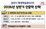 [시사토픽뉴스]용인특례시는 25일부터 수지구에 있는 용인시평생학습관에서 인문학 산책 수강생을 모집한다고 13일 밝혔다. 이번 강좌는 한국 소설, 현대미술, 발레 음악과 같이 다채로운 분야에서 용인 시민의 인문학적 사고의 폭을 넓히는 데 도움을 주고자 마련됐다. 교육 과정은 ▲3월 K-콘텐츠와 최근 한국 소설 ▲4월 현대미술은 왜 어려울까? ▲5월 음악을 통한 발레의 이해‘로 구성돼 있으며 매월 다른 주제로 진행된다. 대상은 19세 이상 용인 시민이라면 누구나 가능하며 지역 내 기업 재직자, 재외국민, 결혼이민자도 신청할 수 있...