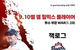 장흥 최준규 기자2025. 10.09[시사토픽뉴스]KBO와 한국쉘석유주식회사(이하 ‘한국쉘’)가 함께 시상하는 ‘쉘힐릭스플레이어’의 2025 신한 SOL뱅크 KBO 리그 9-10월 수상자로 두산 잭로그와 LG 오스틴이 선정되었다. ‘쉘힐릭스플레이어’는 WAR(대체 선수 대비 승리 기여도)를 기준으로 선정하며, 9-10월 투수 부문에서는 두산 잭로그가 WAR 1.28로 1위를 차지했다. 잭로그는 9-10월 동안 총 25이닝(공동 6위)을 소화하며 평균자책점 1.08(1위), WHIP 0.92(4위)를 기록했다. 삼진 또한 27개(공동 7위) 잡아내는 등 안정적인 경기...