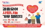 전주시 최준규 기자2025. 10.07[시사토픽뉴스]군포시 산본보건지소는 오는 10월 13일부터 31일까지(19일간) 국민건강보험공단 군포지사와 함께하는 '걸음모아 사랑나눔' 기부챌린지를 운영한다. ‘걸음모아 사랑나눔’ 기부챌린지는 2023년부터 군포시와 국민건강보험공단 군포지사가 협력해 추진해 온 사회공헌형 걷기 사업이다. 시민들이 일상 속에서 걸음을 모아 목표를 달성하면 이를 기부로 연계해 취약계층에 전달하는 방식으로 진행되며 시민과 지역 내 기업·단체가 함께 참여해 건강한 나눔 문화를 지역사회에 확산시키고 있다. 기부챌린지는 군포시민 누구나 참여할 수 있으며 ...