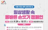 경제 최준규 기자2025. 10.01[시사토픽뉴스]충남 서산시는 세계 손씻기의 날(10월 15일)을 맞아 10월 17일까지 다양한 행사를 진행한다고 밝혔다. 세계 손씻기의 날은 각종 감염병 예방에 필수적인 손씻기 습관을 개선하고자 유엔(UN)에서 제정한 날이다. 이번 행사는 올바른 손씻기 교육·홍보를 통해 시민들의 감염 예방 인식을 높이고, 감염병 예방을 위한 올바른 손씻기 실천 문화 정착을 위해 진행된다. 세계 손씻기의 날인 15일에는 서산시보건소에서 세계 손씻기의 날 홍보관을 운영한다. 홍보관에서는 △손세정 검사기를 활용한 올바른 손씻기 체험 △감염병 예...