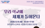 광주광역시 최준규 기자2025. 12.07[시사토픽뉴스]광주광역시서부교육지원청은 오는 15일 오후 3시30분 시민협치진흥원 대강당에서 ‘2025 광주 광산구 교육국제화특구 성과공유회 및 특강’을 개최한다. 이번 행사는 ‘우리 학교에 세계가 들어온다’를 주제로, 학교 현장에서 추진된 글로벌 교육활동 우수사례를 공유하고 학생·교사·학부모·시민에게 글로벌 감수성을 확산하기 위해 마련됐다. 행사는 교육국제화특구 주요 운영 성과 소개, 특구 프로그램에 참여한 월곡초등학교 등 3개 학교 우수사례 발표, 독일 출신 방송인 다니엘 린데만(Daniel Lindemann)의 ‘다문화의 ...