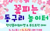 화순 최준규 기자2026. 03.31[시사토픽뉴스] 화순군은 오는 4월 4일부터 5일까지 이틀간 화순 동구리 호수공원에서 ‘꽃피는 동구리 놀이터’ 행사를 개최한다고 밝혔다. 이번 행사는 벚꽃 개화 시기에 맞춰 동구리 호수공원을 찾는 방문객들에게 다양한 먹거리와 체험 프로그램을 제공해 봄나들이의 즐거움을 더하고, 가족·연인·친구와 함께 특별한 추억을 만들 수 있도록 마련됐다. 행사 기간에 청년 푸드트럭에서는 닭꼬치, 츄러스, 핫도그 등 남녀노소가 즐길 수 있는 다양한 먹거리를 판매한다. 호수공원의 아름다운 풍경과 함께하는 먹거리가 벚꽃 나들이의 만족도를 한층 높일 ...