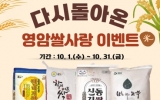 전라남도 최준규 기자2025. 09.29[시사토픽뉴스]영암군이 10월1일부터 31일까지 지역 농산물 소비 촉진, 고향사랑기부제 활성화를 위해 총 750명에게 혜택을 주는 ‘다시 돌아온 영암쌀사랑 이벤트’를 진행한다. 행사 기간 영암군에 10만원 이상 고향사랑기부금 기부자 선착순 300명과 추첨 선정자 450명에게 영암 대표 브랜드 쌀을 증정하는 것. 당첨자에게는 달마지쌀 5kg, 학이머문쌀·신동진쌀·하이아미쌀 4kg 중 1종을 무작위로 제공한다. 이벤트에는 고향사랑e음, 위기브, 웰로 등에 고향사랑기부하면 자동 참여되고, 당첨자 발표는 11월6일까지 개별 전화...