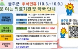 군산시 최준규 기자2025. 09.29[시사토픽뉴스]울산 울주군이 추석 연휴기간 지역 의료 공백 최소화를 위해 다음달 3일부터 9일까지 응급의료체계를 구축해 운영한다고 29일 밝혔다. 울주군은 이 기간 보건소에 응급진료상황실을 설치 운영하고, 지역 내 응급의료기관과 ‘문 여는 병·의원·약국’ 정보를 실시간으로 안내한다. 울주군 지역응급의료기관인 ‘서울산보람병원’은 24시간 응급의료진료가 가능하며, 달빛어린이병원인 ‘햇살아동병원’은 추석 당일을 제외한 나머지 기간 오전 9시부터 오후 6시까지 소아와 성인을 대상으로 운영한다. 추석 당일에는 ‘아이좋은 소아청소년과의...