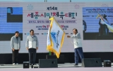 스포츠 최준규 기자2025. 09.27[시사토픽뉴스]세종시체육회는 2025년 9월 27일 세종시민운동장 보조경기장 특설무대에서 '제14회 세종시민체육대회' 개회식을 성황리에 개최했다. 이번 대회는 최민호 세종시장, 임채성 시의회 의장, 강준현, 김종민 국회의원을 비롯한 각 기관 내빈과 회원종목단체장, 24개읍면동체육회장, 선수단 등 총 2,800여 명이 참석한 가운데 진행됐다. 세종시체육회가 주최하고 읍면동체육회, 회원종목단체가 주관, 세종시가 후원하는 이번 체육대회는 시민들이 참여하는 지역 최대 규모의 생활체육 축제로 정식 11개 종목과 시범 3개 종목에서 각 읍...