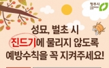 스포츠 최준규 기자2025. 09.27[시사토픽뉴스]추석 연휴를 앞두고 성묘, 벌초, 농작업 등 야외 활동이 증가하고 있는 가운데, 청주시 보건소는 진드기에 물려 발생하는 쯔쯔가무시증과 중증열성혈소판감소증후군(SFTS) 예방에 각별히 주의해야 한다고 27일 밝혔다. 질병관리청에 따르면 최근 3년간 전체 진드기매개감염병 환자의 약 74%가 9월에서 11월에 집중적으로 발생했다. 시에서는 지난해 쯔쯔가무시증 환자가 총 51명 발생했으며, 특히 11월(28명)에 집중되어 가을철 이후 발생이 두드러졌다. SFTS 환자는 3명 발생으로 수는 적었으나, 백신과 치료제가 없고...