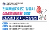정읍시 최준규 기자2026. 03.20[시사토픽뉴스] 정읍시 보건소가 지역 내 심뇌혈관질환 고위험군의 조기 발견과 체계적인 건강 관리를 돕기 위해 오는 27일까지 ‘심뇌혈관질환 예방 건강검진 및 시민건강강좌’ 참여자 200명을 선착순으로 모집한다. 전북권역심뇌혈관질환센터와 국민건강보험공단, 정읍아산병원, 한국심장재단 등 4개 전문 기관이 협력해 추진하는 이번 사업은 중증 질환으로 발전할 수 있는 심뇌혈관질환 고위험군을 선제적으로 찾아내고 맞춤형 관리를 지원하기 위해 마련됐다. 모집 대상은 정읍시에 거주하는 시민 가운데 이상지질혈증을 앓고 있거나, 국민건강보험공단으로...