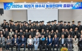 여수 최준규 기자2025. 09.25[시사토픽뉴스]여수시는 지난 24일 농업기술센터 농업인교육관에서 ‘2025년 농업인대학 졸업식’을 열고 60명의 졸업생을 배출했다고 밝혔다. 이날 졸업식에는 여수시 농업인대학장인 정기명 시장을 비롯해 백인숙 시의회 의장, 시의원, 농업 유관기관장, 농업인단체장 등 80여 명이 참석해 졸업생들을 축하했다. ‘여수시 농업인대학’은 2006년 설립 이래 지역 농업의 변화와 트렌드에 맞춘 교육과정을 운영하며 농업 인재를 육성해 왔다. 지난 20년간 총 39개 교육과정을 운영했으며 올해 졸업생 60명을 포함해 지금까지 1,282명이 ...