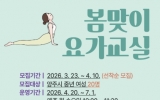 [시사토픽뉴스]양주시보건소 서부건강생활지원센터에서는 양주시 건강생활실천율 향상과 지역 주민의 신체활동 증진을 위해 중년 여성을 대상으로 ‘봄맞이 요가교실’ 참여자를 모집한다. ‘봄맞이 요가교실’은 유연성 증진을 위한 요가운동을 통해 관절염 증상 완화 및 기능 개선을 돕고, 근력 및 균형감각 향상을 통해 관절 건강을 증진하기 위한 프로그램이다. 참여자는 오는 3월 23일부터 선착순 20명을 모집하며, 프로그램은 4월 20일부터 7월 1일까지 매주 월·수 오전 10시부터 11시 30분까지 서부건강생활지원센터 건강교육실에서 운영된다....