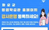화순 최준규 기자2026. 02.12[시사토픽뉴스]화순군은 12일 지역 평생학습 활성화와 다양한 학습 프로그램 운영을 위해 평생학습관 홈페이지를 통해 ‘강사은행’ 등록을 상시 접수한다고 밝혔다. 강사은행은 평생학습 분야에서 활동 중이거나 활동을 희망하는 강사의 전문 분야, 강의 경력, 자격 사항 등을 체계적으로 관리하는 인력풀 제도다. 등록된 강사는 향후 평생학습관 및 관내 평생교육기관에서 강사 섭외 등에 활용된다. 등록 대상은 인문·교양, 문화·예술, 건강·생활체육, 인지·치유, 디지털·미디어 등 평생학습과 관련한 다양한 분야의 강의가 가능한 강사로, 해당...
