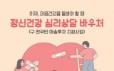 건강 최준규 기자2026. 01.28[시사토픽뉴스]연수구는 우울‧불안 등 정서적 어려움을 겪는 주민의 마음 건강을 돌보기 위해 ‘정신건강 심리상담 바우처 사업’을 시행한다. 이번 사업은 기존 ‘전국민 마음투자 지원사업’을 개편한 것으로, 자살을 예방하고 정신건강 고위험군을 조기에 발견해 중증 정신질환으로 이어지는 것을 방지하는 데 목적이 있다. 지원 대상은 ▲정신건강복지센터, 정신의료기관 등에서 심리상담이 필요하다고 인정받은 사람, ▲국가 건강검진에서 중간 정도 이상의 우울(10점 이상)이 확인된 사람, ▲자립 준비 청년과 보호 연장 아동 등이다. 특히 ...