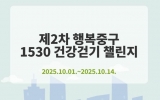 전라남도 최준규 기자2025. 09.22[시사토픽뉴스]부산 중구는 관내 중구민과 직장인을 대상으로 10월 1일부터 10월 14일까지 걷기 앱 워크온을 활용한‘제2차 행복 중구, 1530 건강걷기 챌린지’를 운영한다 참여자들의 걷기 실천 향상과 중구 내 걷기 문화 확산을 위한 본 챌린지는 시간과 장소 제약 없이 워크온 앱이 설치된 휴대폰을 지참한 후 기간 내 70,000보 걷기를 목표로 하고 있으며, 목표 달성 시 추첨을 통해 소정의 상품을 제공할 예정이다. ‘제2차 행복중구, 1530 건강걷기 챌린지’는 9월 22일부터 사전 예약을 시작하며 참여를 희망하는 주민은...