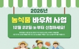 강진 최준규 기자2025. 12.18[시사토픽뉴스]강진군이 취약계층의 먹거리 접근성을 높이고 균형 잡힌 식생활을 지원하기 위해 2026년 농식품바우처 지원사업을 추진한다. 신청 접수는 오는 22일부터 시작한다. 이번 사업은 생계급여 수급 가구 중 임산부, 영유아, 아동 및 청년이 포함된 가구를 대상으로 하며, 특히 1992년 1월 1일 이후 출생한 청년이 포함된 가구까지 대상이 확대돼 보다 많은 가구가 혜택을 받을 수 있게 됐다. 2025년 농식품바우처 이용자의 카드 사용은 이달 31일 종료되며, 기존 이용자는 행복e음 자격검증을 통해 자격이 유지될 경우 별도 신...