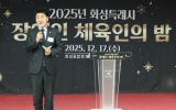 전주시 최준규 기자2025. 12.18[시사토픽뉴스]화성특례시의회는 17일, 화성종합경기타운 3층 라운지홀에서 열린 녩년 화성특례시 장애인체육인의 밤’행사에 참석해 한 해 동안 각자의 자리에서 땀과 열정으로 값진 성과를 이뤄낸 장애인 체육인들의 노고를 격려하고 축하했다. 이날 행사에는 배정수 의장을 비롯해 이용운·최은희 의원이 참석했고, 화성특례시장애인체육회 체육 가족 등 150여 명이 함께했다. 무대는 영상 시청, 시상식, 만찬 순으로 진행됐고 한 해의 도전을 되돌아보고 서로를 응원하는 따뜻한 연대의 장으로 마련됐다. 배정수 의장은 “선수 여러분은 훈련장을 지키는...