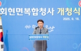 전라북도 최준규 기자2025. 09.18[시사토픽뉴스]군산시 회현면(면장 정용남)이 18일 청사 내 광장에서 ‘행정복지센터’와 ‘너나들이 쉼터’ 완공을 기념하는 복합청사 개청식을 개최했다. 이날 개청식에는 강임준 군산시장, 김우민 군산시의장, 신영대 국회의원, 시·도의원, 관내 기관장 및 초청 내빈을 비롯한 300여 명이 참석하여 회현면 복합청사의 새로운 출발을 축하했다. 행사는 회현면 풍물팀의 길놀이를 시작으로 한 식전 공연과 복합청사 신축 유공자에 대한 표창·감사패 수여, 내외빈 축사, 테이프 커팅식, 기념 촬영, 청사 관람 순으로 진행됐다. 이번에 완성된 회현...