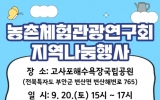 부안군 최준규 기자2025. 09.17[시사토픽뉴스]부안군 농촌체험관광연구회(회장 채명심)가 오는 20일 변산면 고사포해수욕장에서 ‘무료 체험 프로그램’를 개최한다. 이번 행사는 관광객과 지역민들에게 봉사하고, 부안군의 우수한 농촌 체험 농장을 홍보하기 위해 마련됐으며, 농촌체험관광연구회가 주최하고, 국립공원관리공단이 후원한다 상반기에 이어 두 번째 치뤄지는 나눔 행사에서는 농촌체험관광연구회 회원들이 직접 개발하고 운영하는 다채로운 체험 프로그램이 진행될 예정이다. 요리체험으로 지역 농특산물을 활용한 옥수수버터구이 만들기, 보리빵 만들기, 상황버섯 담금주...