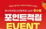 장수군 최준규 기자2025. 09.17[시사토픽뉴스] 장수군은 장수군 농특산물 온라인 쇼핑몰 ‘장수몰’에서 제19회 장수 한우랑사과랑 축제 기간인 18일부터 21일까지 나흘간 장수몰 포인트 적립 이벤트를 운영한다고 밝혔다. 이번 이벤트는 축제장을 찾은 방문객들이 사과마당과 농특산물 판매전에서 농특산물을 구매한 뒤 안내부스로 영수증을 제시하면 사은품 또는 장수몰 포인트를 받을 수 있는 행사다. 구매 금액은 사과마당과 농특산물 판매전 내 전체 금액을 합산해 인정하며, 5만원 이상 구매 시 타포린백 또는 보온보냉백 중 한 가지 사은품을 증정하고, 10만원 이상 구매하...