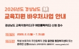 남원시 최준규 기자2026. 01.27[시사토픽뉴스]경상남도는 ‘2026년도 경상남도 교육지원 바우처사업’을 본격 시행한다고 27일 밝혔다. ‘교육지원 바우처사업’은 초·중·고 학생의 학력 향상과 균등한 교육기회를 제공하기 위해 학생 1인당 연간 10만 원의 포인트가 적립된 교육지원카드(구 여민동락카드)를 지급하는 사업이다. 지원 대상은 경상남도 내에 주소를 둔 중위소득 70% 이하 가구 초·중·고 학생이다. 신청 기간은 2월 2일부터 7월 31일까지이며, 보호자의 주민등록 기준 읍면동 행정복지센터를 방문하거나 경상남도 교육지원카드 홈페이지를 통해 온라인으로 신청...