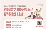 사회 최준규 기자2025. 09.16[시사토픽뉴스]영등포구가 ‘제6회 아동ㆍ청소년 정책제안 대회’를 개최하고, 오는 9월 26일까지 참가 제안서를 접수한다고 밝혔다. 이번 대회는 아동ㆍ청소년들에게 정책에 참여할 기회를 제공하고 그들의 눈높이에 맞는 정책을 구정에 반영하기 위해 기획됐다. 참가 자격은 영등포구에 거주하는 7세~18세 아동ㆍ청소년 또는 관내 초중고 재학생 및 학교 밖 청소년으로, 개인 또는 모둠 단위로 참여할 수 있다. 정책제안 주제는 아동ㆍ청소년의 삶과 밀접한 ▲놀이와 여가 ▲참여와 시민의식 ▲안전과 보호 ▲보건과 사회서비스 ▲교육환경 ▲주거환경의 ...