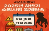 목포 최준규 기자2025. 09.15[시사토픽뉴스]서산소방서는 9월 15일부터 11월 28일까지 2025년 하반기 소방 사범 일제 단속을 실시해 시민 안전을 위협하는 불법 행위를 근절하기 위한 본격 수사에 돌입한다고 밝혔다. 이번 단속은 화재 예방과 관계인들의 안전의식 제고를 위해 마련됐으며, 안전한 소방 환경을 조성하는 것을 목표로 추진된다. 주요 단속 대상은 ▲옥외탱크 저장소‧옥내저장소 등 위험물 안전관리법 위반사항 ▲일반감리‧상주 감리 현장의 소방시설공사업법 위반사항 ▲공장, 창고, 노유자시설, 위험물시설, 공동주택 등 주요 5대 취약시설의 위반 행위를 고려...