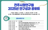 전주시 최준규 기자2026. 01.26[시사토픽뉴스]전주시정연구원(원장 박미자)은 개원 2주년을 맞아 27, 28일 양일간 전주시 주요 정책 연구성과를 공유하는 ‘2025년 연구성과 공유회’를 개최한다고 26일 밝혔다. 전주시 소통협력센터 1층 커뮤니티 라운지에서 열리는 연구성과 공유회는 전주시 정책 연구 결과를 시민, 관계기관, 전문가들과 공유하고 향후 정책 방향을 논의하기 위해 마련됐다. 첫째 날인 27일에는 경제사회연구부와 문화관광연구부의 연구성과 발표가 진행된다. 경제사회연구부에서는 ▲전주시 인구정책 종합계획 수립 연구(’26~’30) ▲전주시 중장기 종합...