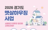 정치 최준규 기자2026. 01.25[시사토픽뉴스]경기도가 난방비 및 전기료 등 주거비 부담을 덜어주기 위해 2026년 햇살하우징 사업을 추진한다. ‘햇살하우징’은 저소득층 주택의 성능을 개선하고 에너지 효율을 높이는 주택개조 사업으로 2013년부터 현재까지 총 4,052가구의 주택 개보수를 지원했다. 올해는 총 150가구를 지원할 예정이다. 주요 지원 항목은 ▲창호 및 출입문 교체 ▲벽체 단열 보강 ▲LED 조명 교체 ▲고효율 냉·난방기(보일러, 에어컨) 교체 등이다. 신청 대상은 경기도민 중 기준 중위소득 50% 이하 가구(기초생활수급자, 차상위계층 포함)로...