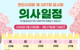 [시사토픽뉴스] 천안시의회가 오는 3월 23일부터 27일까지 5일간의 일정으로 제287회 임시회를 운영한다. 이번 임시회에서는 시정 주요 현안과 시민 생활에 밀접한 조례안 등 총 43건의 안건을 심의할 예정이다. 회기 첫날인 23일 제1차 본회의에서는 5분 발언을 통해 정책 대안을 제시한다. 주요 내용은 ▲충남·대전 행정통합 무산에 따른 지역 영향 점검(이병하 의원) ▲천안시 의용소방대 드론전담팀 도입 및 운영 제안(김철환 의원) ▲천안시 탄소중립 실현을 위한 시민 참여 기반 확대 제언(엄소영 의원) 등이다. 각 상임위원회...