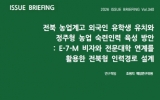 전라북도 최준규 기자2026. 03.19[시사토픽뉴스] 전북연구원은 19일 농업계고 특성화고·마이스터고 외국인 유학생을 육성형 전문기술인력(E-7-M) 비자와 연계한 새로운 인력 양성 모델인 ‘전북형 농생명 숙련인력 패스웨이’를 제안했다. 이번 이슈브리핑에서 전북연구원은 ‘농업계고 유학생(D-4-3)-전북 농생명 특성화 전문대학(D-2)-전북 농생명기업 취업(E-7-M)-인구감소지역 정주(F-2)’로 이어지는 4단계 경로를 제시했다. 또한, 기존 단기·단순노동 중심 외국인력 정책을, 전북에 장기 정착하는 농업 숙련인력을 체계적으로 육성하는 전략으로 전환해야 한다고...