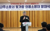 여수 최준규 기자2026. 01.22[시사토픽뉴스]전라남도의회 최명수 도의원(더불어민주당·나주2)은 1월 22일 나주소방서 대회의실에 열린 ‘빛가람 의용소방대 발대식’에 참석해 발대를 축하하고, 지역 안전 강화를 위한 의용소방대의 역할과 중요성을 강조했다. 이날 발대식에는 윤병태 나주시장, 신향식 나주소방서장과 소방공무원, 김용준·장숙희 나주시 의용소방대 연합회장과 의용소방대원, 이재태 전라남도의원, 나주시 의원 등 100여 명이 참석해 자리를 빛냈다. 빛가람 의용소방대는 채기천 대장을 중심으로 총 30명의 대원으로 구성됐으며, 나주 혁신도시 중심 지역인 빛가...